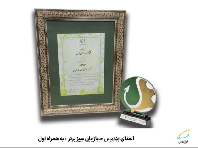 این جایزه به علت اتخاذ رویکردهایی در زمینه فصل مشترک اقتصاد و محیط زیست با هدف کاهش انتشار گازهای گلخانه ای و تعریف و اجرای پروژه های مدیریت مصرف انرژی و توسعه دانش سازمانی در زمینه کنترل مصرف منابع در سطح سازمان و مشارکت در طرح های ملی به شرکت ارتباطات سیار ایران اعطاء شد.